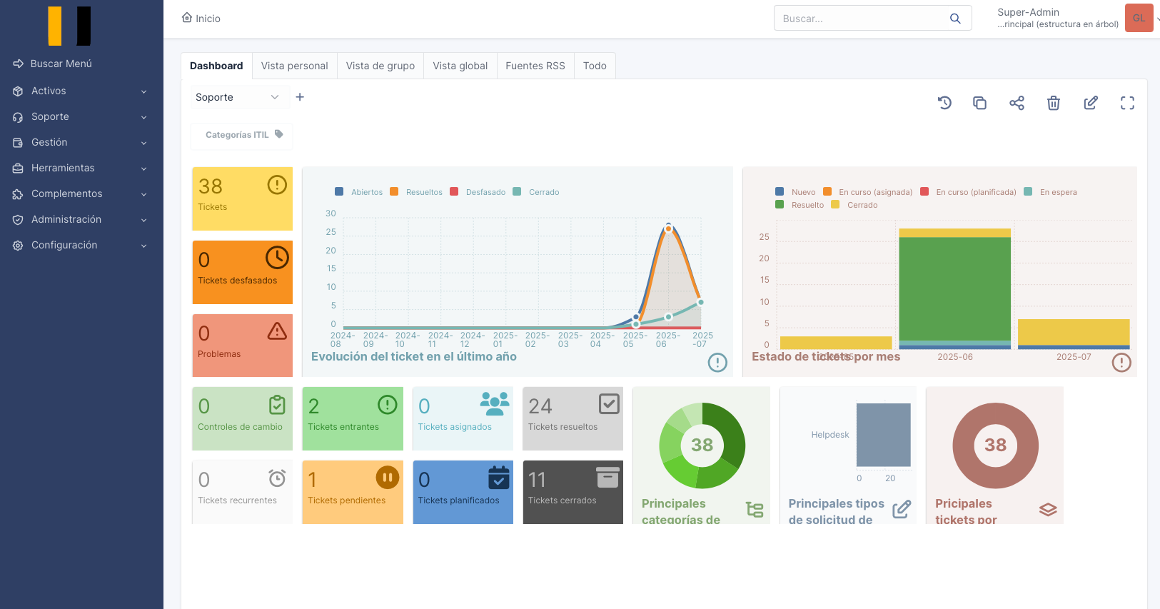 Optimiza y centraliza la administración de soporte técnico y activos tecnológicos con GLPI. Controla en tiempo real todas las solicitudes, asigna prioridades y da seguimiento eficiente a cada incidencia. Lleva un inventario detallado que facilita la planificación, mantenimiento y reducción de costos operativos. Ideal para empresas que buscan aumentar productividad, mejorar la satisfacción del usuario y proteger su infraestructura con una plataforma confiable y escalable.